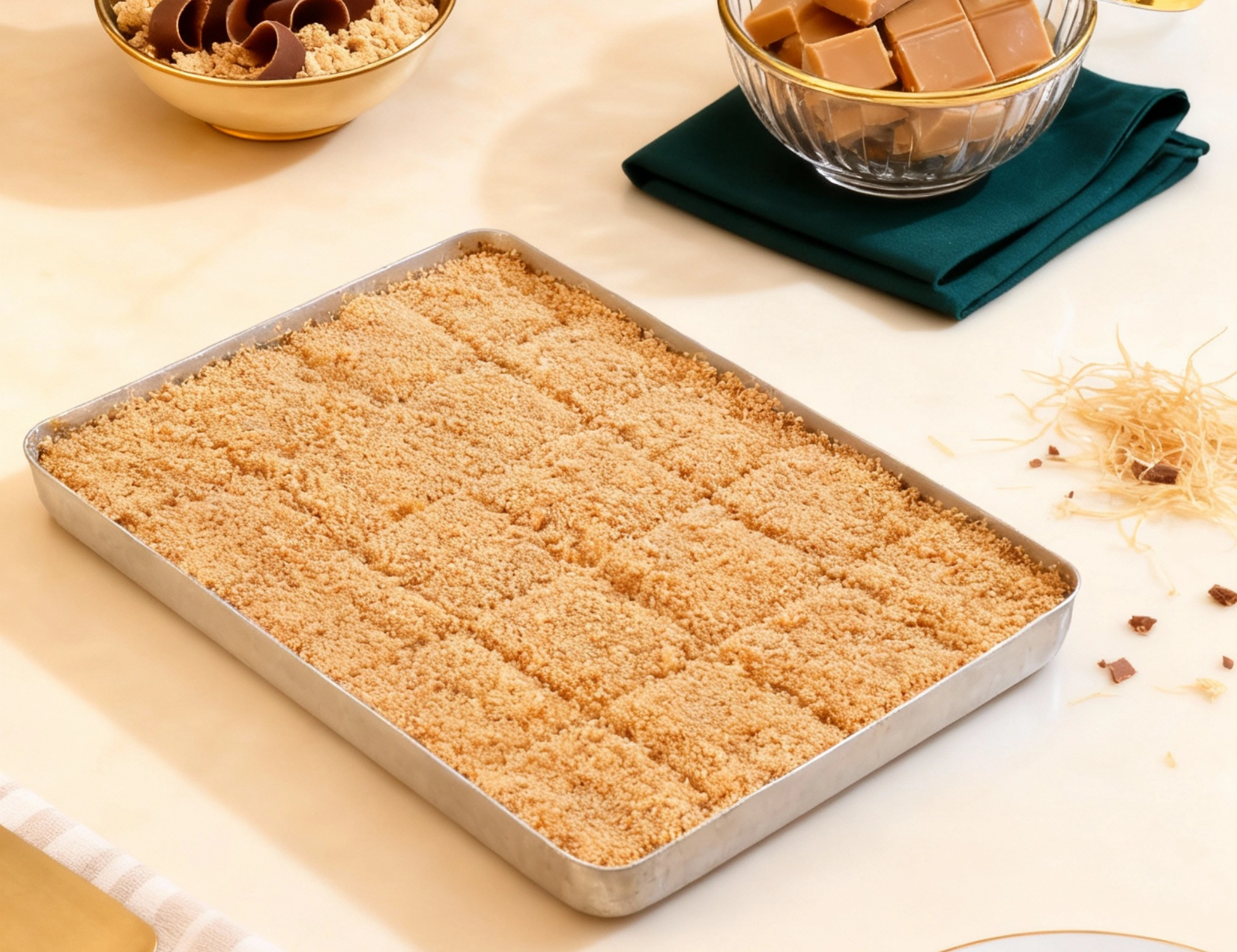 Kıtır tel kadayıfın hafif sütlü dokusu, özel karamelli şerbetle buluşarak benzersiz bir lezzete dönüşüyor. İç harcında kullanılan 1. sınıf Gaziantep boz fıstığı, tatlının yoğun aromasını tamamlıyor. Üzerine eklenen karamel aromalı Belçika çikolatası ise tatlıya modern, hafif yanık şeker notaları taşıyan eşsiz bir karakter kazandırıyor.